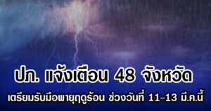 ปภ. เตือน 48 จังหวัด เตรียมรับมือพายุฤดูร้อน ช่วงวันที่ 11-13 มี.ค.นี้