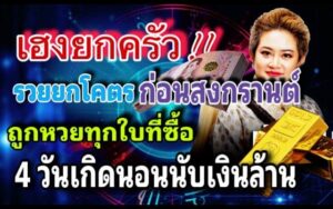 ครั้น เมื่อ ถึง ฤกษ์ งาม ยาม เด่น ดิถี อัน เป็น มงคล นั่น ก็ คือ ใน งวด ที่ จะ ถึง นี้ ดวง ชะตา ของ ตัว ท่าน นั้น จะ ได้ รับ การ แปร เปลี่ยน คือ เปลี่ยน จาก ร้าย ให้ กลาย เป็น ดี เปลี่ยน จาก ไม่ มี ให้ กลาย เป็น มี จน เหลือ กิน เหลือ ใช้ เพราะ หาก ว่า ตัว ท่าน นั้น [เพลง] จะ ทำ การ ซื้อ หวย 2 ตัว 3 ตัว ย่อม ที่ จะ ได้ จับ เงิน หมื่น นับ เงิน แสน หาก ทำ การ หยิบ ซื้อ ลอตเตอรี่ โดย เฉพาะ หวย ชุด 5 ใบ 10 ใบ ต่อ ให้ ตัว ท่าน นั้น หลับ ตา หยิบ ปิด ตา ซื้อ สุ่ม หยิบ [เพลง] สุ่ม ซื้อ รางวัล ที่ 1 ก็ ยัง เข้า หา พลิก ชะตา
