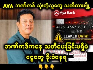 AYA ဘဏ်ကဒ် သုံးတဲ့သူတွေ အခုချက်ချင်း လုပ်ဆောင်ကြပါ…See More AYA ဘဏ်ကဒ် သုံးတဲ့သူတွေ အခုချက်ချင်း လုပ်ဆောင်ကြပါ…See More