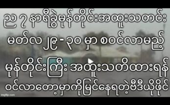 ည ၇ နာရီခွဲမုန်တိုင်းအထူးသတင်း မတ်လ ၂၉ – ၃၀ မှာ စဝင်လာမည့် မုန်တိုင်းကြီး အထူးသတိထားရန် Read More