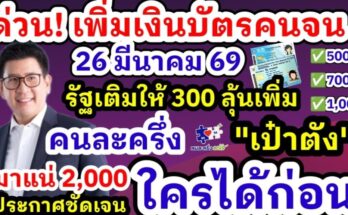 เติมเงินบัตรคนจน 700-1,000 สวัสดิการแห่งรัฐ ช่วยเหลือเกษตรกร วินมอไซค์ รถตู้ แท็กซี่ เพิ่มเท่าไหร่ สรุปให้ตรงประเด็นเลยนะ — ตอนนี้ข่าว “เติมเงินบัตรคนจน 700–1,000 บาท” ที่แชร์กัน ยังมี ความเข้าใจคลาดเคลื่อน / ข่าวลือปนอยู่เยอะ ข้อมูล “จริงล่าสุด” (ปี 2569) จากข้อมูลทางการของรัฐ (กรมบัญชีกลาง) วงเงินบัตรสวัสดิการแห่งรัฐปกติ: ซื้อของจำเป็น: 300 บาท/เดือน ค่าเดินทาง: …